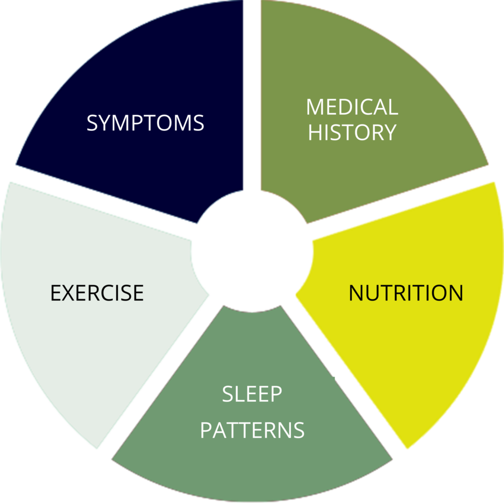 Your first visit includes a comprehensive review of your symptoms, medical history, nutrition, exercise, and sleep patterns.
